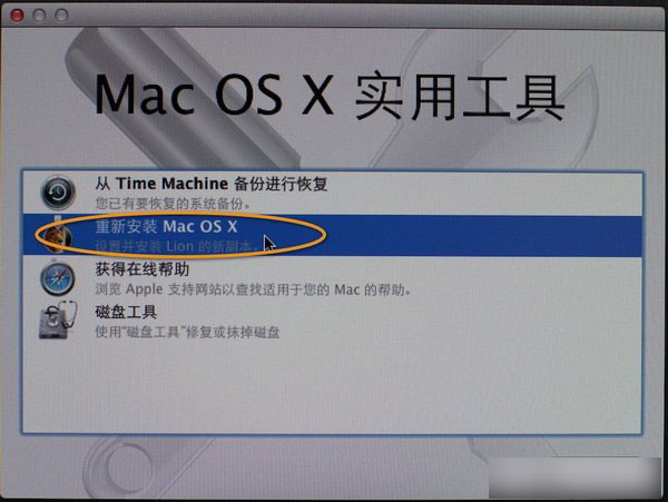 系統會退回到Mac OS X 使用工具界面。選擇“重新安裝Mac OS X”,單擊“繼續”。