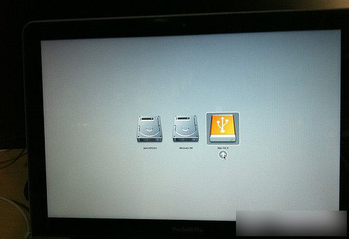 插入U盤開機,長按“option”鍵進入啟動界面,選擇黃色的“Mac OS X”就可以引導系統進行安裝了。
