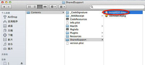 在“Contents”文件夾中進入“SharedSupport”文件夾并找到“InstallESO.dmg”文件。