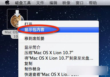 右鍵單擊Mac OS X Lion 10.7,選擇“顯示包內容”。