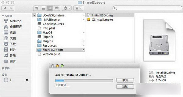 雙擊運行“InstallESD.dmg”文件并等待加載完成。