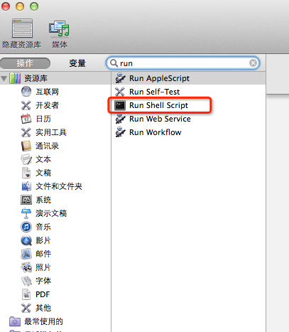 3、搜索Run Shell Script 并選中雙擊