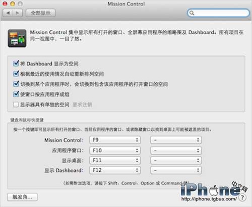 如果你不能習(xí)慣這種顯示方式,你可以完全把第二個(gè)屏幕上的菜單欄隱藏起來(lái)。但是到底要如何設(shè)置呢?針對(duì)這個(gè)問題的設(shè)置選項(xiàng)隱藏得比較深。首先打開系統(tǒng)偏好設(shè)置,打開“Mission Control”,把顯示器具有單獨(dú)的空間這一選項(xiàng)取消打鉤就可以了。做出這一修改需要注銷再登陸。