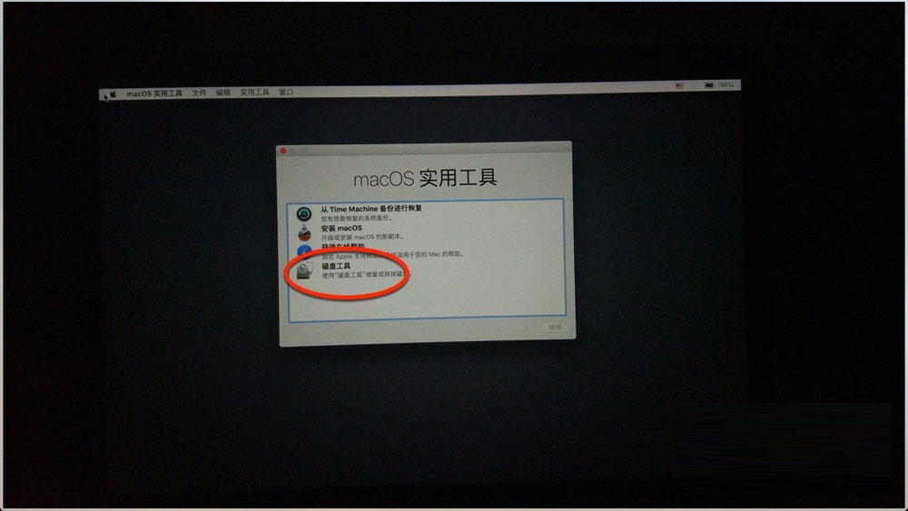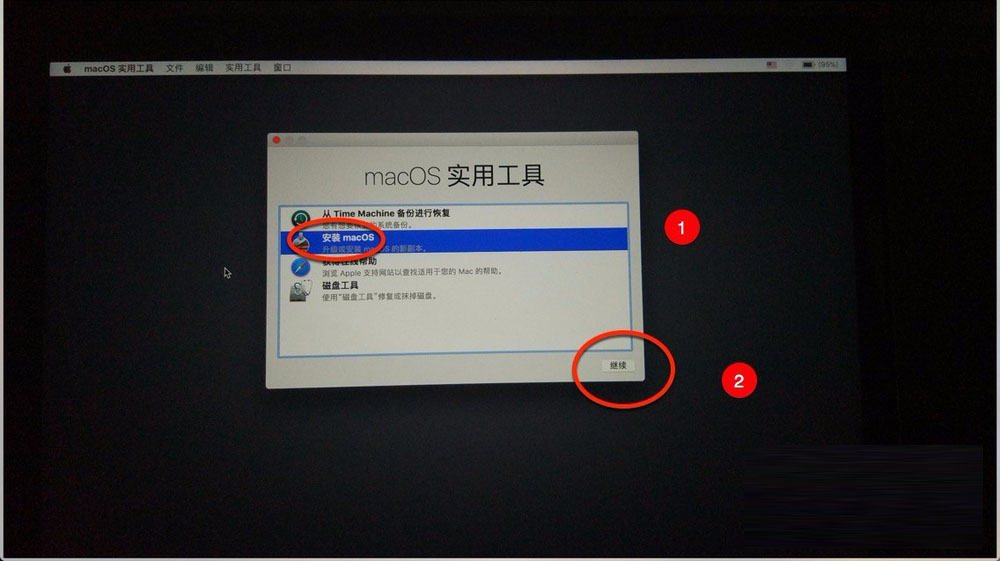 5、在圖一選擇macOS High Sierra,在圖二選擇磁盤工具。