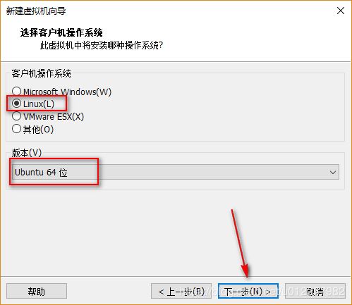 5)在“選擇客戶機操作系統”選項中,選擇客戶機操作系統為“Linux”,版本選擇Ubuntu 64位(因為Ubuntu20.04系統屬于Linux系統,64位);