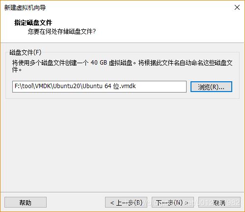 14)在“指定磁盤文件”選項中,指定該虛擬機的硬盤文件存放于位置;