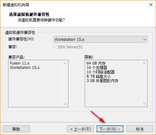 3)在“選擇虛擬機硬件兼容性”中采用默認配置,直接點擊下一步;