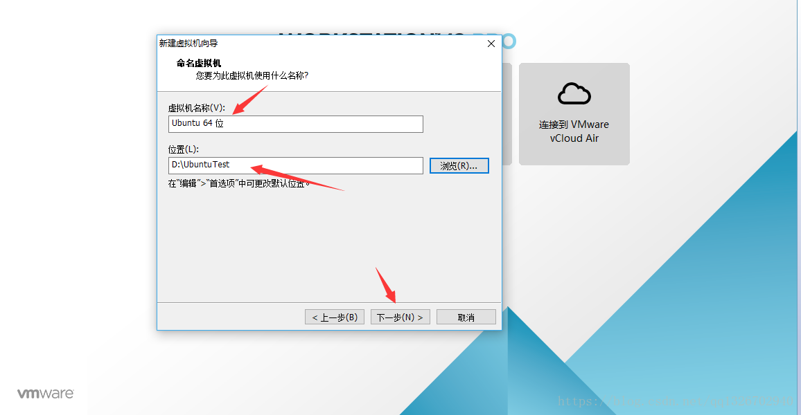 2.5)輸入 虛擬機名稱 和 安裝位置,然后 點擊 下一步