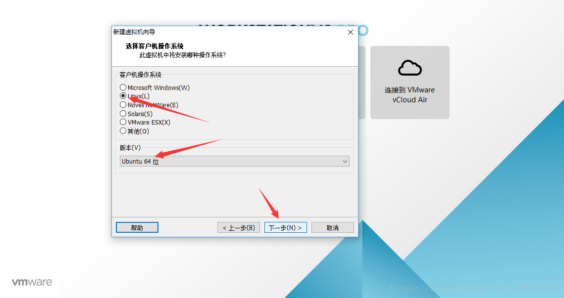 2.4 客戶機操作系統 選擇 Linux,版本 Ubuntu 64位(因為下載的是64位的系統,如果是 32位的,選擇 Ubuntu)