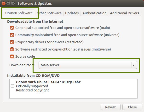 該錯誤很容易修復,只需修改軟件源為主服務器即可。轉到“軟件和更新”,在那里你可以修改下載服務器為主服務器: