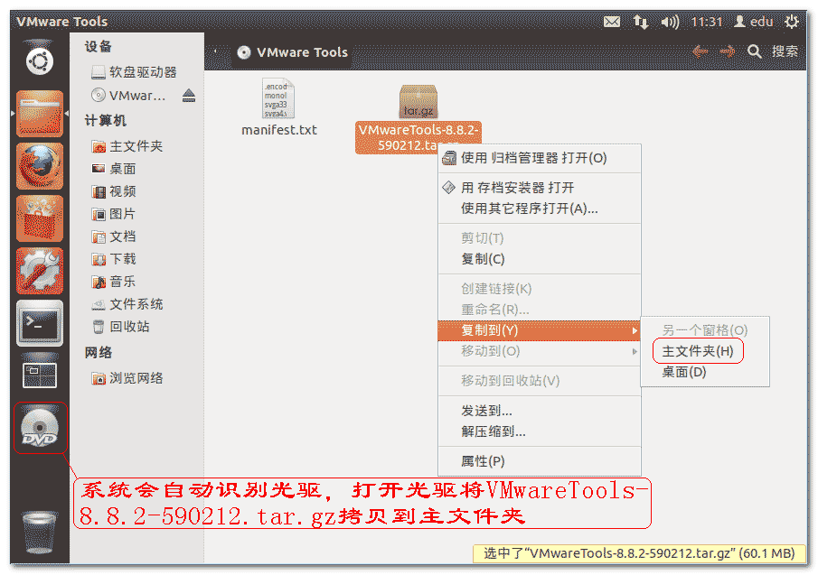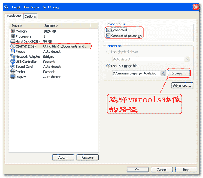 第一步:將vmtool的iso鏡像放入到虛擬機的光驅