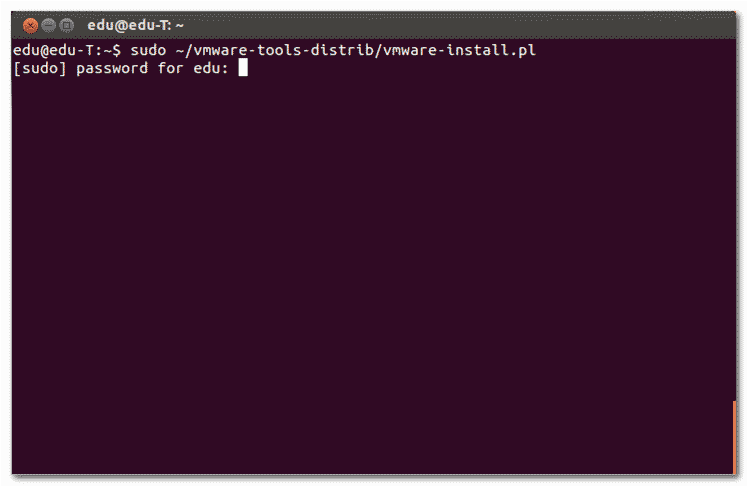 sudo ~/vmware-tools-distrib/vmware-install.pl