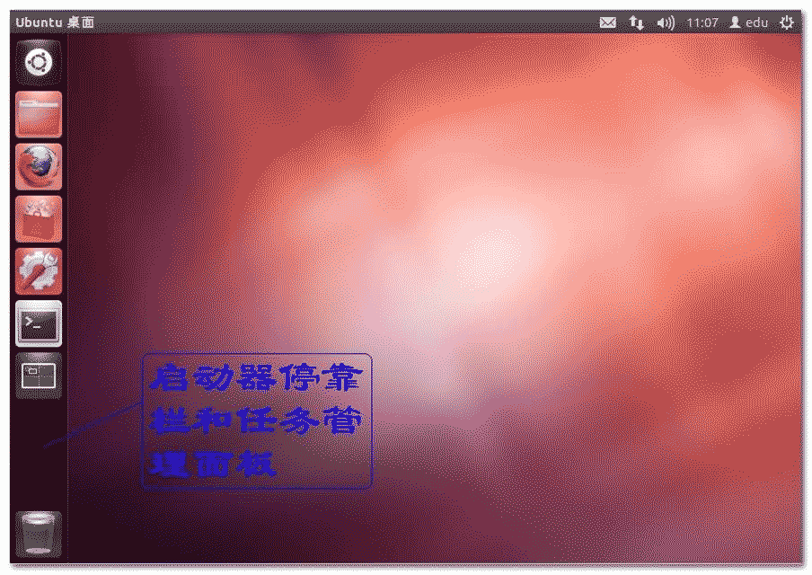 從2010.10版本后,Unity成為ubuntu默認桌面。Unity桌面環境打破了傳統的GNOME面板配置。桌面左邊包括一個啟動器停靠欄和任務管理面板。