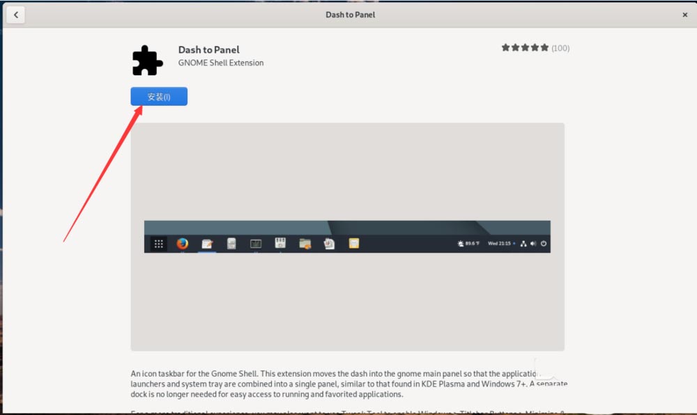 4、進入 Dash to panel界面后,點擊“安裝"。