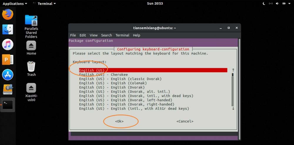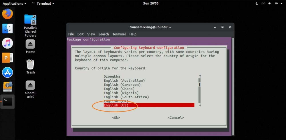 3、選擇國家English(us),按tab選OK。