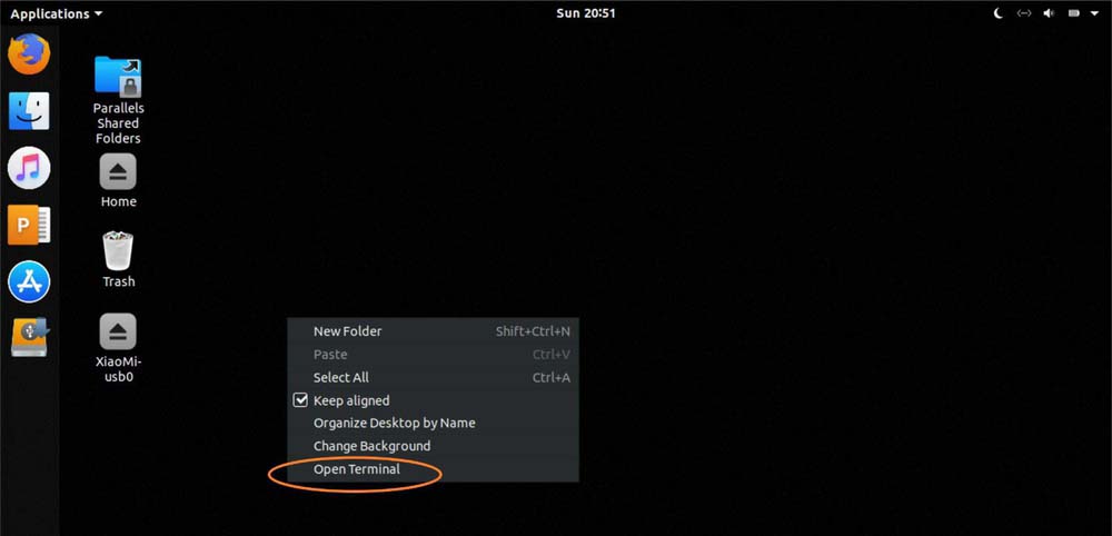 1、在桌面上右鍵,打開open terminal,輸入命令。