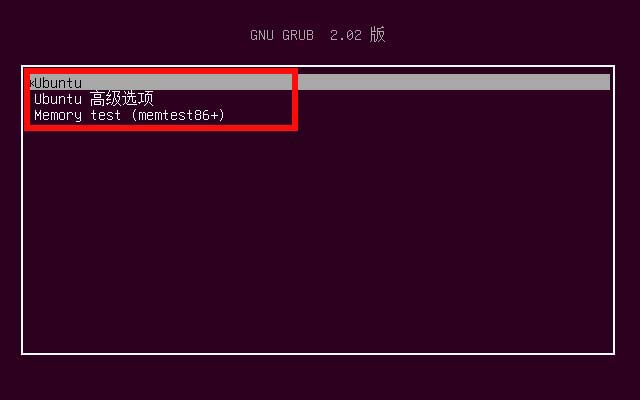 6、現在我們再重啟ubuntu系統就可以進入grub引導界面了。