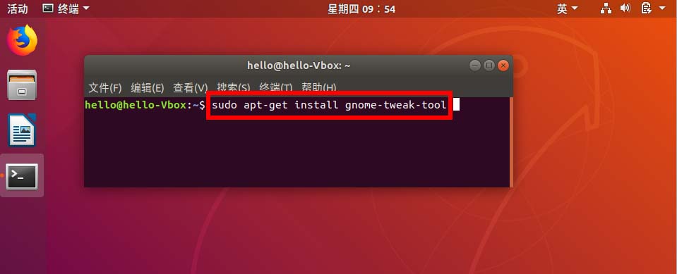 5、在終端打開gnome-tweak-tool工具。