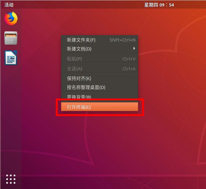 1、在ubuntu18.04桌面上右鍵 打開終端。