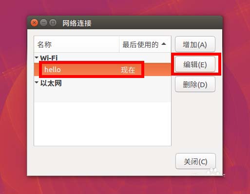 2、選擇現在正在連接的,比如這里的hello,然后點選旁邊的 編輯。