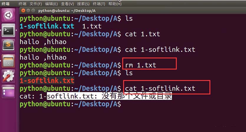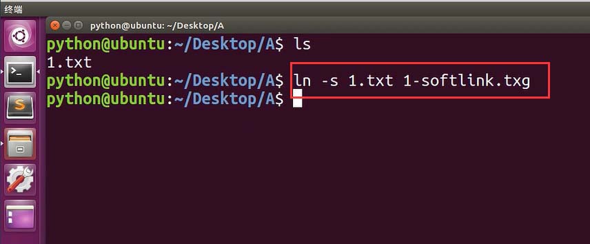 7、綜上所述,Ubuntu中建立軟鏈接運用ln命令,第一個參數是要建立軟鏈接的文件,第二個參數是軟鏈接名稱