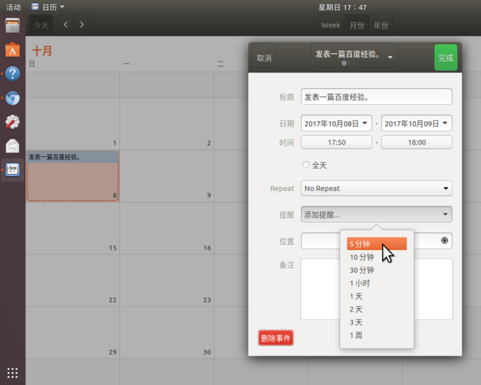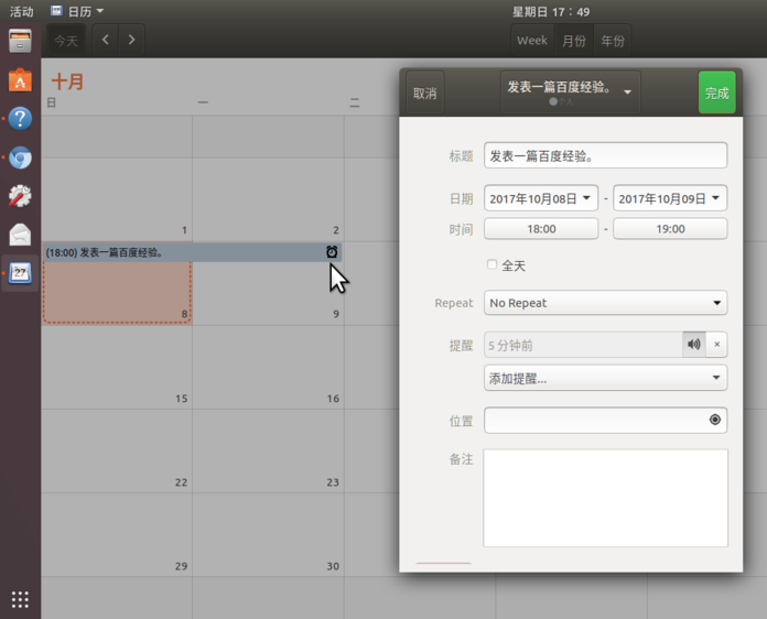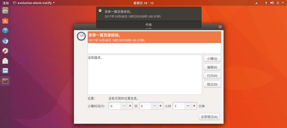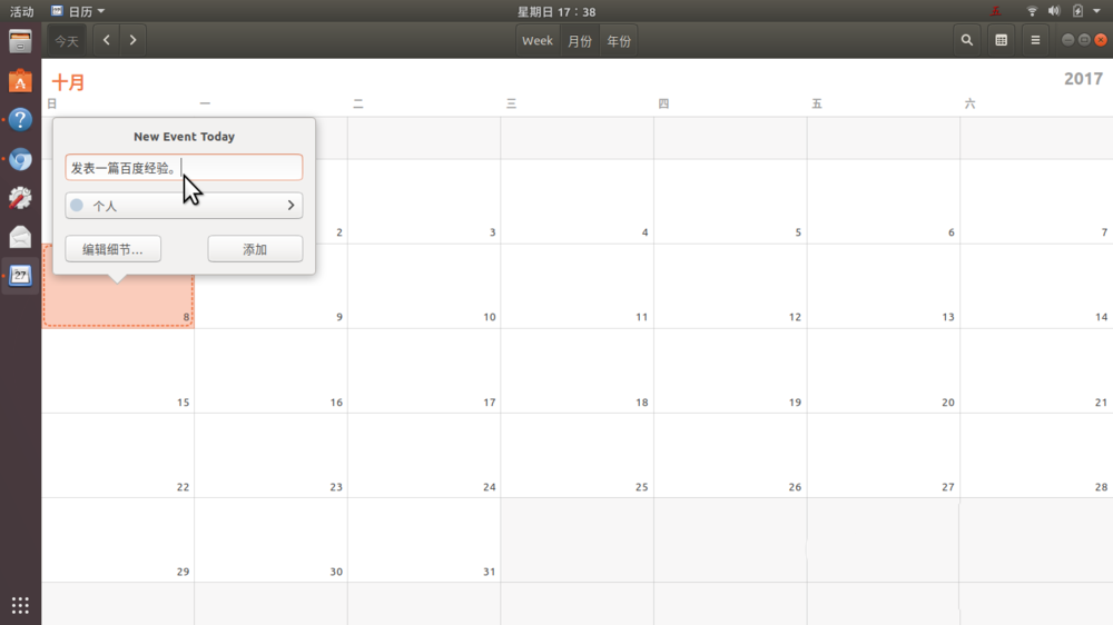 Ubuntu 17.10中默認使用 Gnome 作為桌面環境,該環境提供了較為方便直觀的日程管理功能。希望大家喜歡,請繼續關注武林網。