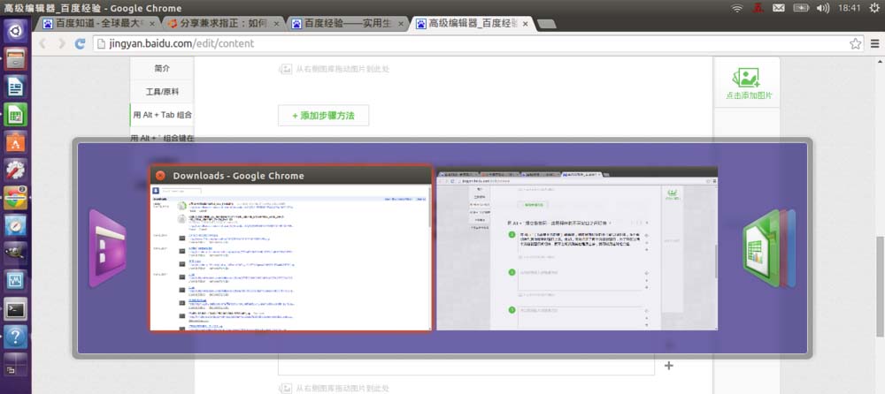 1、按 Super + w 組合鍵,會啟動“展覽”切換模式,所有窗口像展板被布置在展臺上一樣平鋪在整個桌面上,視覺上很酷,而且還有利于預覽各個程序窗口的具體內容。