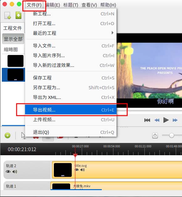 13、字幕設置完成后我們可以通過“文件”--“導出視頻”,選擇視頻格式就可以導出帶字幕的視頻了。