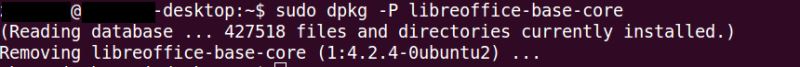 1、使用命令dpkg -P libreoffice-base-core進行卸載,如圖。