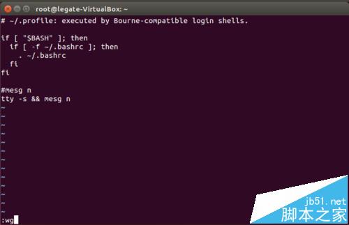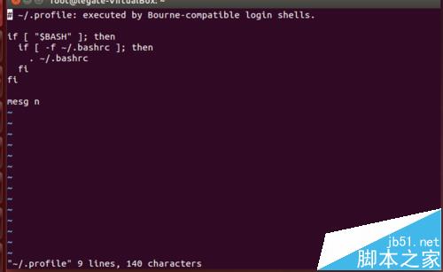5、然后在最后面一行輸入tty -s && mesg n,整個內容如下圖所示。