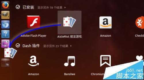 3、查找程序圖標,也可以按下 Win + a 組合鍵,然后在 Dash 的搜索框中輸入要查找的程序的關鍵詞,Dash 將會快速顯示出相關應用,這時再拖放相應圖標就可以了。Dash 的搜索框支持中、英文等多種語言輸入。