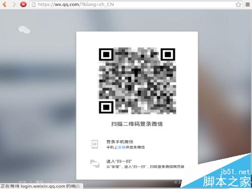 2、進入網頁版微信主頁,與網頁版 QQ 類似,也是需要手機掃描二維碼進入。