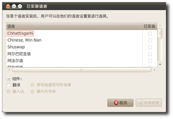 4.單擊 應用變更,系統會提示輸入當前用戶密碼。接著 Ubuntu 會自動下載和安裝需要的包。安裝完成后,新裝的語言就會出現在 語言 對話框的下拉列表中。