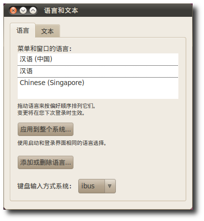 5.分別在 語言 和 文本 標簽中為當前用戶和登錄界面選擇語言,若要應用到整個系統,則點擊 應用到整個系統。