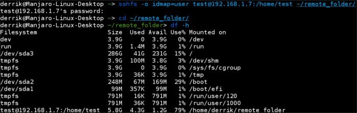 注意: 也可以通過 SSH 密鑰文件掛載 SSHfs 文件系統(tǒng)。只需要在上面的命中用 sshfs -o IdentityFile=~/.ssh/keyfile, 替換 sshfs -o idmap=user 部分。