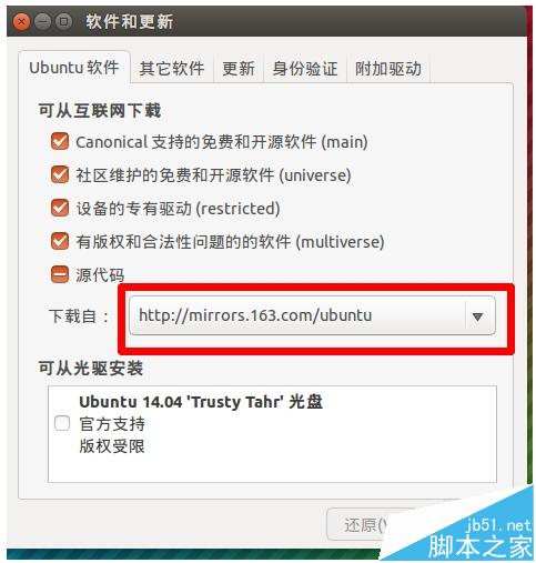 打開“系統設置(右上角的齒輪里或者啟動器里)----------->軟件和更新”