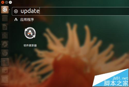 2、如果需要手動執行系統更新:按下鍵盤上的 Win 鍵;或者點擊左側啟動器欄上方的 Ubuntu 標志圖標,啟動 Dash;在搜索框中輸入:update。