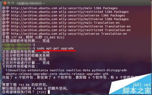2。接著執行:$ sudo apt-get upgrade,用于對當前已經安裝的包進行升級。