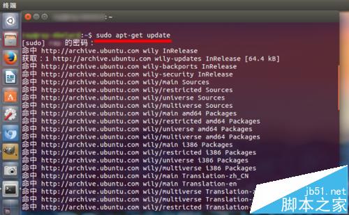 1、按 Ctrl+alt+t,打開終端,輸入:$ sudo apt-get update,用于檢查當前的源服務器上,是否有可用的更新。