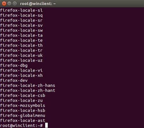 如果你知道軟件包名的開頭字符,我們便可以使用搜索功能來縮小范圍。例如要查看Firefox 的包名,則可使用類似如下命令: