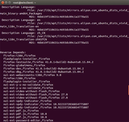 axi-cache 可以算是apt-cache 命令的孿生兄弟,但它可以提供的描述信息和相關性更強。我們還是以Firefox 來舉個例子: