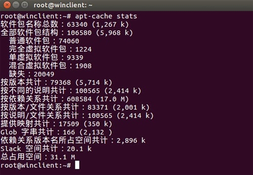 當我們需要查看當前 Ubuntu 不同類型包的統計及整體統計信息時,可以使用 stats 選項: