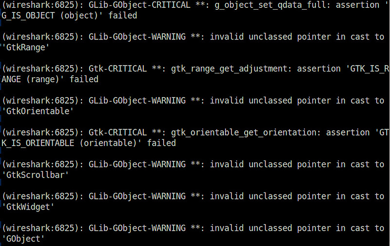 這是 Wireshark 的 UI,尤其是在 Ubuntu 桌面下運行時,當你向上或向下滾動分組列表視圖時,或開始加載一個 pre-recorded 包轉儲文件時,有時會掛起或凍結,并出現以下錯誤。