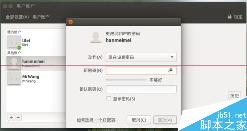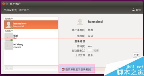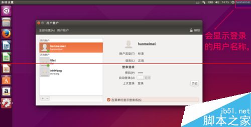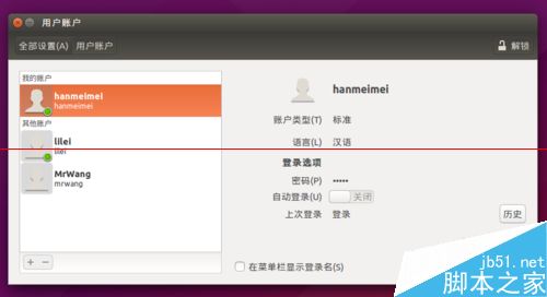 Ubuntu15.04系統解決新增用戶不能登錄該怎么辦?我們新增了一位標準用戶hanmeimei,一位管理員用戶MrWang。大家在新增好用戶后,肯定躍躍欲試的想用這個新用戶登錄。不過,我們會發現我們是無法使用新用戶登錄進系統的。今天,這個經驗我們就和大家一起來解決這個問題。