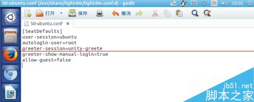 編輯50-ubuntu.conf文件內容最終為:[SeatDefaults]user-session=ubuntu
