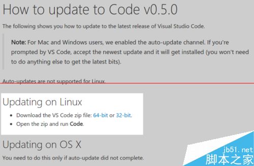 5、在接下來的頁面,我們點擊 Updating on Linux 一節里的鏈接,開始下載。有兩個鏈接,分別是 64 位的和 32 位的,根據自己的情況選擇。