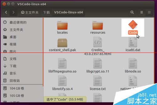 8、解壓完成,進入與軟件壓縮包同名的文件夾,在一個名為 Code 的可執行文件上雙擊。