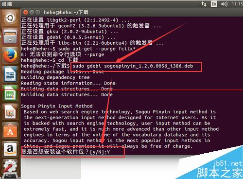 輸入:sudo gdebi so 然后按tab鍵補(bǔ)全搜狗的文件名稱按,按enter執(zhí)行后,等待某狗安裝完成。如果期間提示“您是否想要安裝這個(gè)軟件包(Y/N)”,那么你輸入“Y”然后按回車鍵就可以了