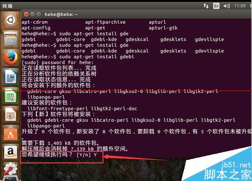 輸入命令: sudo apt-get install gdebi,后按enter執(zhí)行
