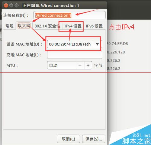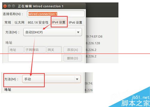 4、打開的選項,窗口叫【正在編輯】,我們在正在編輯窗口里面,可以看到以太網的網口mac地址,然后在連接方式那里,我們點擊【IPV4】